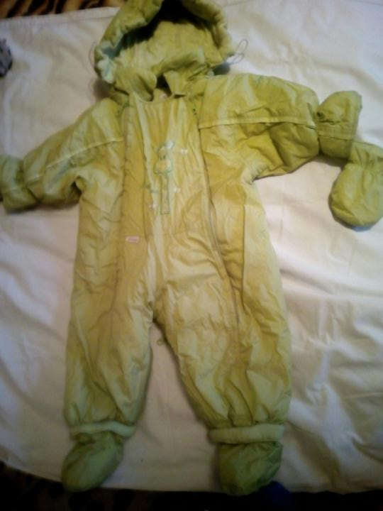 Комбез махровый, на 9 мес, с капюшоном, на рост 74см