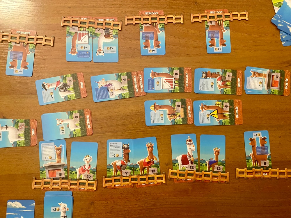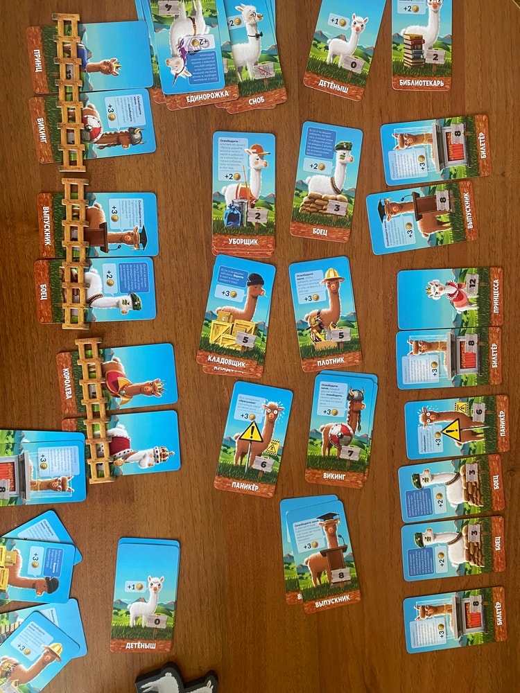 Как же мне нравится игра! Хотя, наверное, правильнее было бы написать, что мне нравится механика колодостроя. Имея в начале игры карты с минимальными значениями, в финале в загонах оказываются шикарные дорогие альпаки.