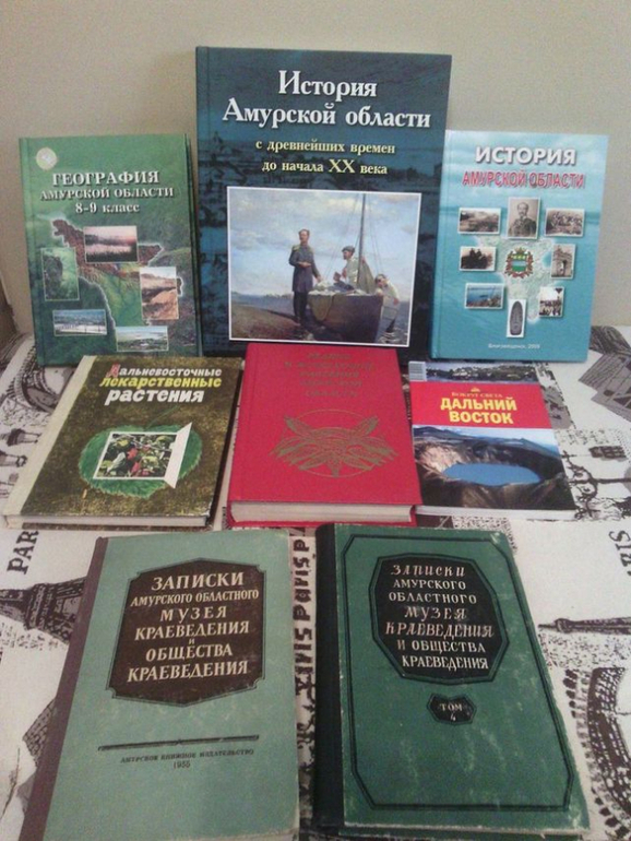 Вот наши "взрослые")) книги на тему области - заселение, история,традиции и культура, растения и экология, география и пр. Т.к. предки мои были казаками первопоселенцами, атаманами (приплыли на плотах среди первых 10 семей из Забайкалья и основали стЧерняево в 1858г, а один из братьев-атаманов присутствовал, как представитель от Амурского казачьего войска на коронации цесаревича), то и книги у нас соответствующей тематики))