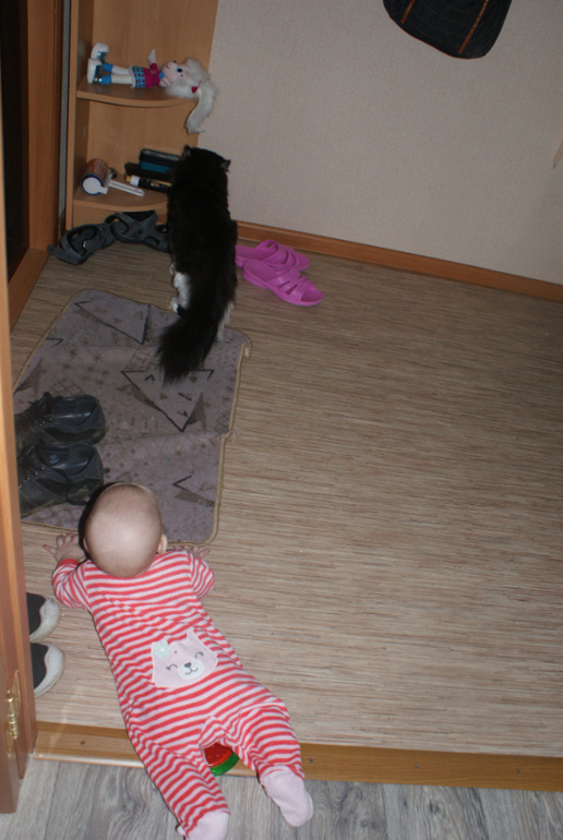 ты поди каждый день полы моешь? нам сегодня кошку забирать...а малышка молодец! мой боится уползать за пределы зала и ковра...