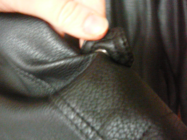 (вот тут под заклепкой потертость одна, снаружи не видно)