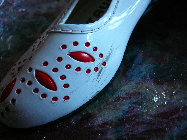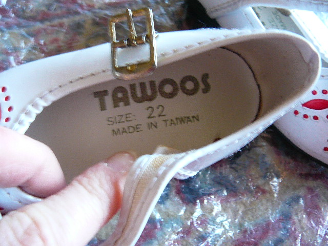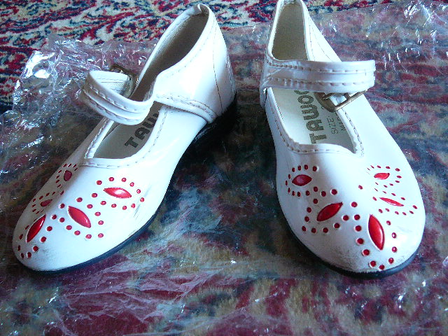 3) Туфельки из 90х =) К слову, в аналогичной паре нашего размера ходим сейчас, так что они пригодны для жизни))) Есть черные полоски, не пробовала оттереть (лень...) 22размер. Не ортопедика,увы.