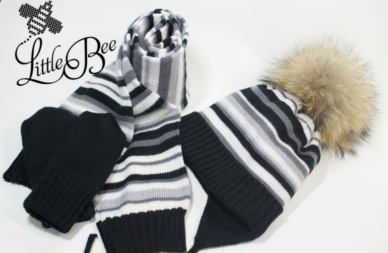 Здравствуйте. Нет возможности захватить картинку. Коллаж с комплектом нано. Там шапочка и шарф. Серый-салатовый-бирюза в полоску шапка, серый шарф. Сколько будет стоить такой комплект, есть ли у вас сейчас такая пряжа?