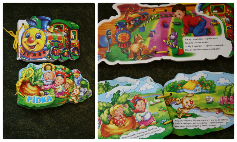 2) Книги, которые можно облизывать. ) Сделаны из клеенчатого материала, который не пострадает от слюней и попыток съесть, а также - не рвется. Издательство "Ранок". Продается и на русском языке.