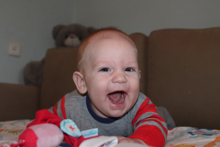 Вертимся мы во все стороны , ввели прикорм т.к у нс жуткий пищевой интерес, прорезался один зуб (и ещё режутся грызем все подряд) , стал бояться чужих людей (женщин а мужчин вроде не боится улыбается им во весь рот), наконец-то мы смогли отучить сына спать в коляске - теперь мы спим в кроватке . Вот такие у нас новости))