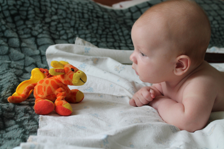 Вот и сткнуло нам 4 месяца )) Малыш меня радует стал очень общительным , играет игрушками хорошо долго может лежать один в кроватке и играть. Переворачивается не очень часто но я не переживаю ногами крепко стоит очень просится сидеть . Слюни у нас рекой текут кулак постоянно во рту а дёсна не набухшие .