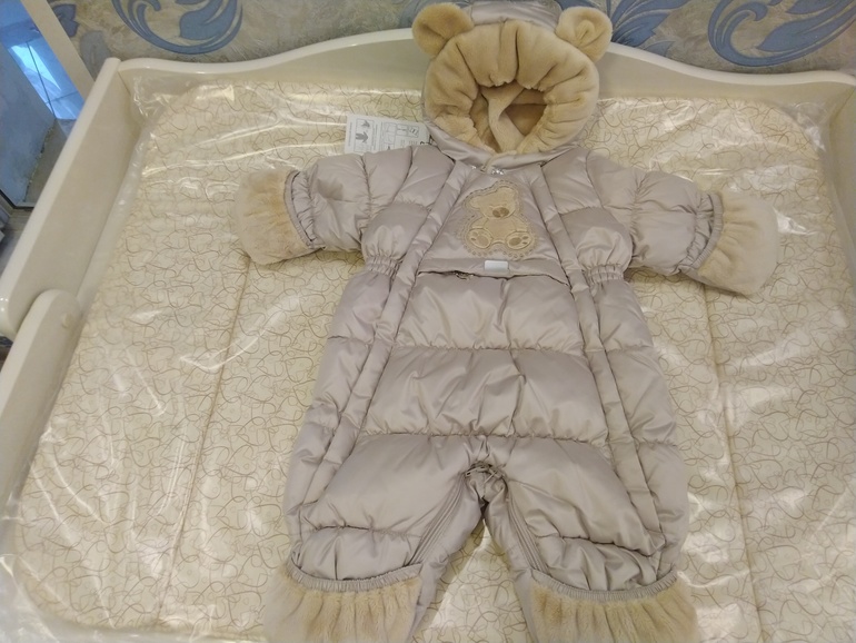 Вот и приехал наш зимний комбез из СП .Изначально заказывала сиреневого зайчика,но его не было в наличии. Пришлось перезаказать на медвежонка,но не жалею.Очень понравился.
