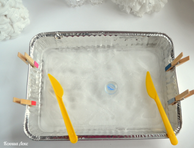 В этом варианте игры нужно налить воду и поставить в морозилку на несколько часов, чтобы замерз только верхний слой (примерно 2-3 часа)!