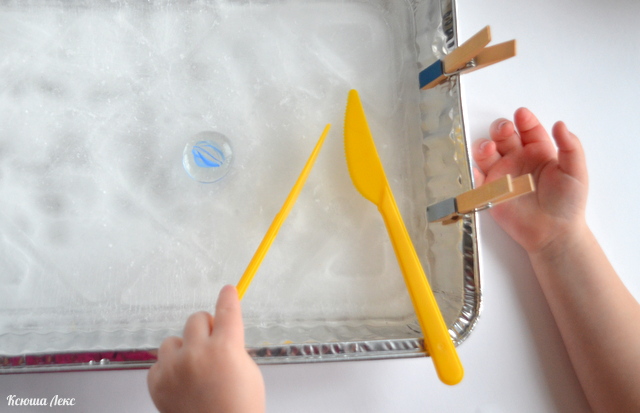В ней можно рисовать на пене для бритья и выкладывать мозаику из трубочек, устроить пустыню или лес для животных, сенсорную коробочку и настоящий ледяной каток.
