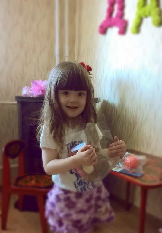 Ну что, моя старшая, мой первенец Дашуля пошла в первый класс. Горжусь, обожаю и переживаю. Ужасно ранимый, чувствительный ребёнок. Знает много всего, но с концентрацией, самоорганизацией - швах. Любит творчество, всё время что-то изобретает из говна и палок, весь дом уже завален поделками, которые выкинуть ни в коем случае нельзя, иначе слёзы. Порой проявляет недетскую проницательность и наблюдательность, порой подкалывает меня и ловит на противоречиях (за что ей спасибо). Всё время у неё какие-то новые увлечения их мультиков, которые она любит смотреть больше всего на свете.