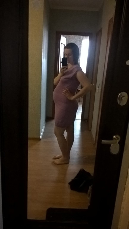 Была вчера на консультации в роддоме, сделали УЗИ. Весит Александра Вадимовна 2240 г, лежит головкой вниз, палец вовсю насасывает. Нижний сегмент матки однородный, толщиной 2,5 мм. ЕР мне категорически не разрешают, учитывая склонность к преэклампсии и рубец. Ну что ж, я на рожон лезть не собираюсь, а мой запал рожать и дальше как-то поутих после этой тяжёлой беременности (разве что лет через 10 ещё разок). Ходить с каждым днём всё тяжелее - даёт знать о себе симфизит (из-за болей хожу подобно утке и при этом похрустываю в такт), борьбу с отёками я явно проигрываю (прибавка уже 10 кг, из которых 4 за последние 1,5 месяца и под вечер ноги похожи на тумбы, аж наступать неприятно). Живот каменеет постоянно, а на днях и вовсе скрутило не по-детски посреди магазина: стало тянуть сильно живот, как после укола окситоцина для сокращения матки после КС. Больше сравнить не с чем, ибо я так и не познала в прошлую беременность, что такое схватки (даже тренировочные). Видимо, это как раз тренировочные и были, но всё же мне стало как-то ссыкотно слегка. Ну ладно, поныла и хватит. Вот так вот мы растём и круглеем: