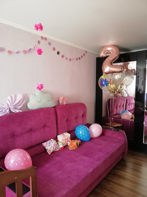 В свой второй день рождения эта малышка утром пошла в сад, пообщалась там со своими новыми друзьями (процесс адаптации наконец-то пошёл, до этого было трудно), а ближе к обеду пошла домой с мамой и сестрой, где её ждал небольшой сюрприз.
