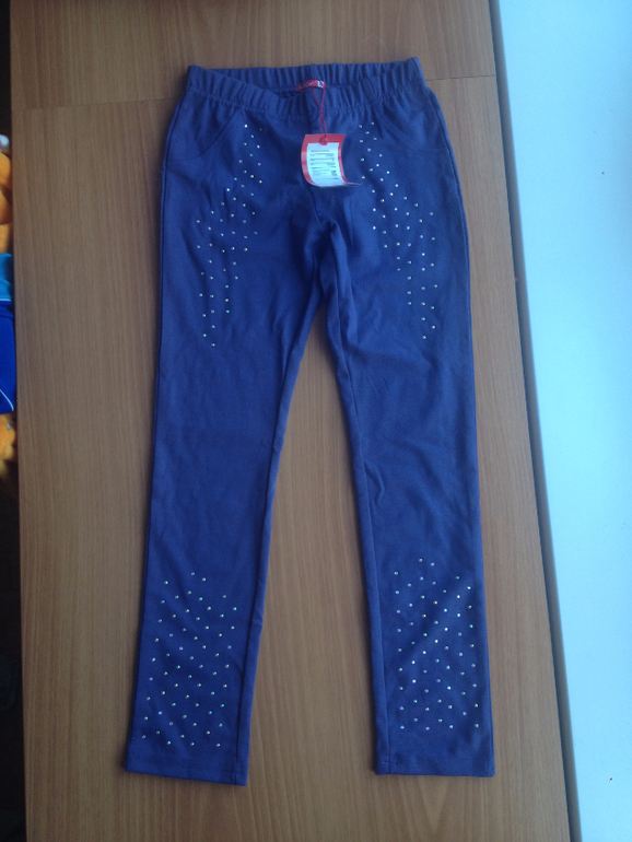 11) Новые лосины пеликан из плотного трикотажа, внизу с резинками. Размер 122. Мы сейчас 126см, по длине нам хорошо.Сзади на карманах звездочки. С коробочкой. На нашу худую попу широки. Пристраиваю как купила 350 руб.