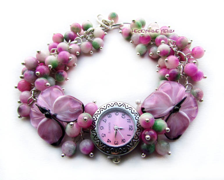 "Порхание лепестков" наручные часы с бусинами лэмпворк