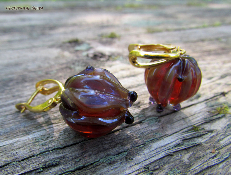 авторские бусины лэмпворк (lampwork), цирконы, позолоченные швензы, фурнитура под золото