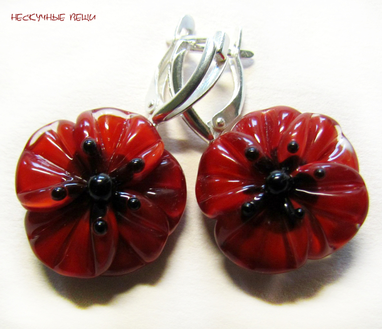 авторские бусины лэмпворк (lampwork), швензы серебро, агат, кошачий глаз, жемчуг, цирконы, металлофурнитура