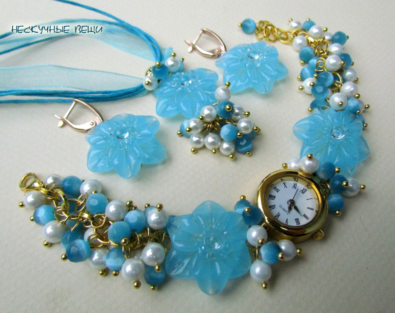 http://www.livemaster.ru/item/9177637-ukrasheniya-sinyaya-ptitsa-komplekt-chasy
