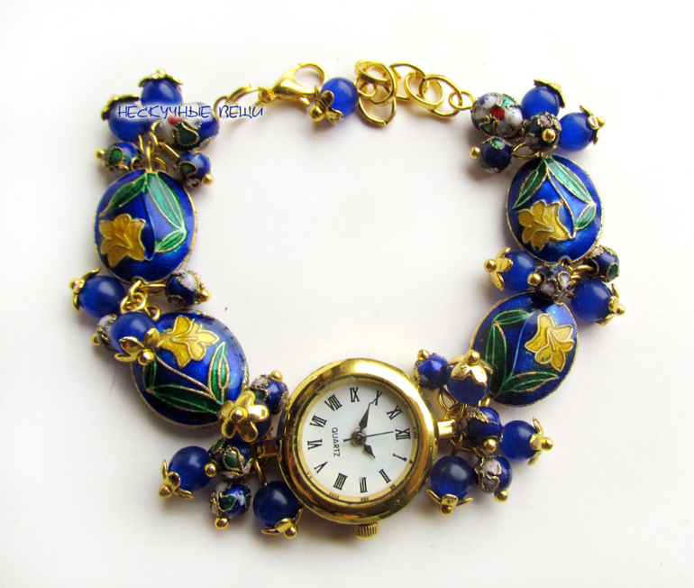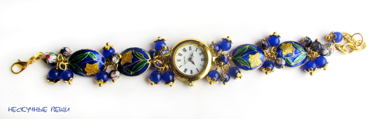 часы, часики, наручные часы, наручные часы в подарок, часы-браслет, часы с браслетом, браслет с часами, Клуазоне, подарок девушке, подарок женщине, женские часы, золотой, золотистый, золотые часы, синий, синие часы, сине-золотой
