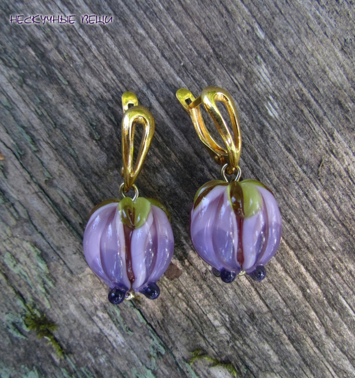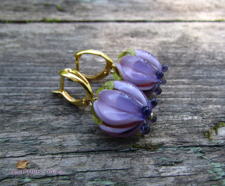 авторские бусины лэмпворк (lampwork), швензы позолоченные