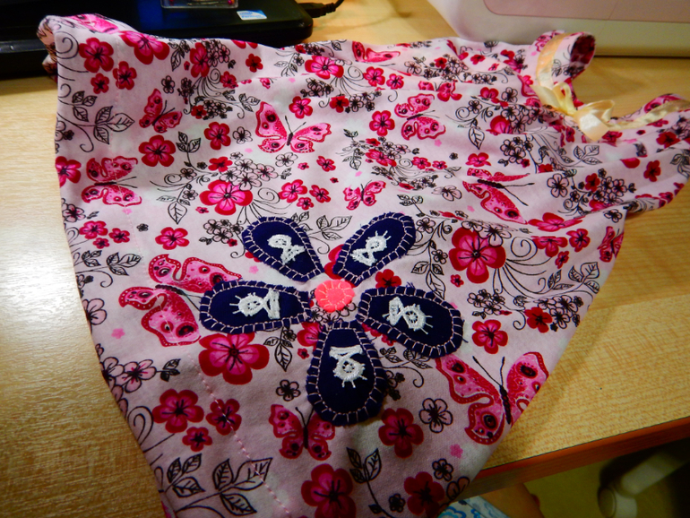 А ручки мои все чешутся. Очень мне хотелось сшить Настюше сарафанчик в сад, ну и вот что получилось:
