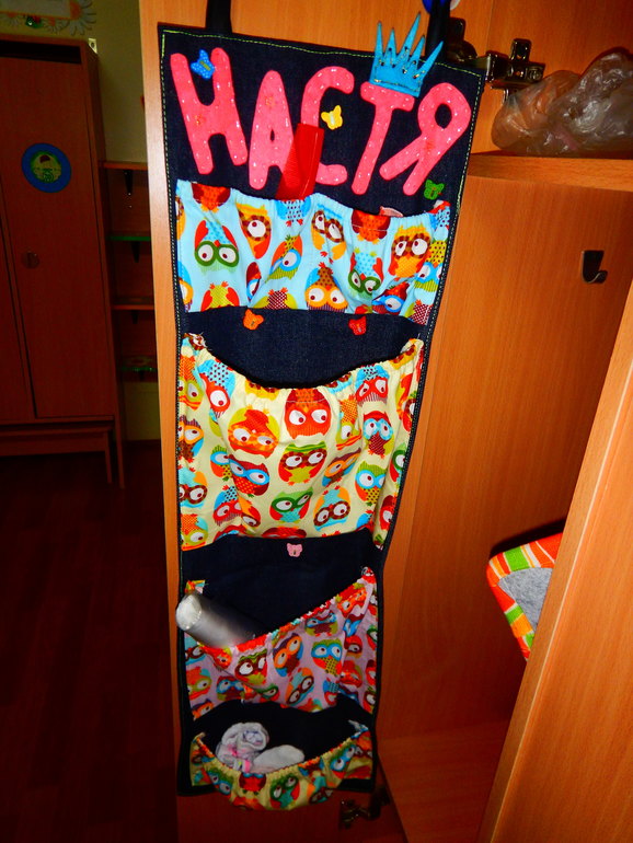 Так же в садик нам остро понадобились кармашки в шкафчик, ибо шкафчик очень малюсенький и все наши наряды он вместить не может:
