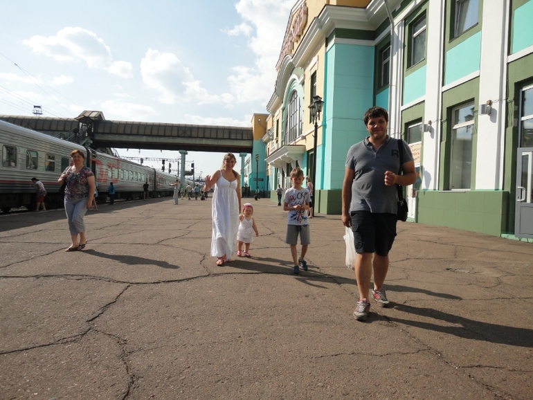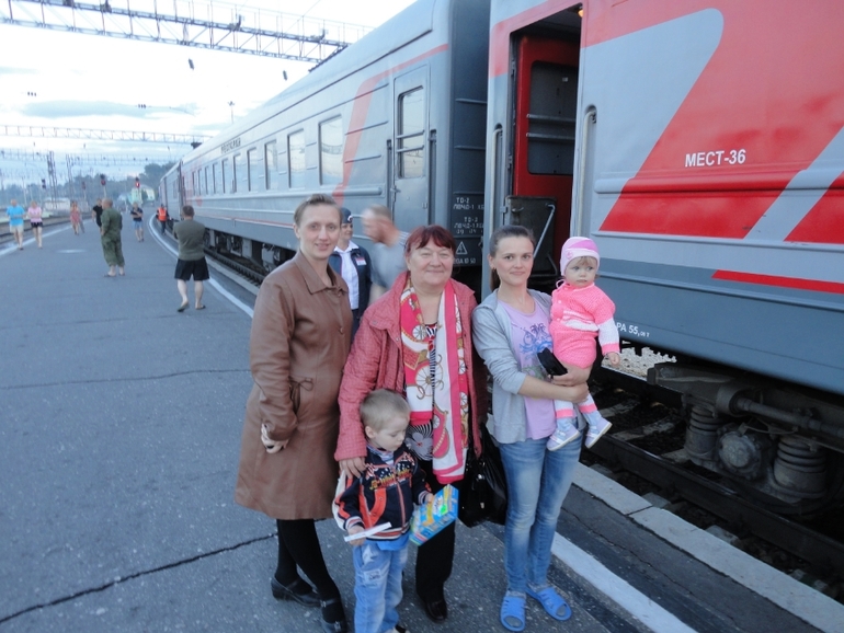 Поездом прокатились,по дороге встречались с родственниками и друзьями.Пока остановка поезда-обняться,поболтать и дальше в путь)))