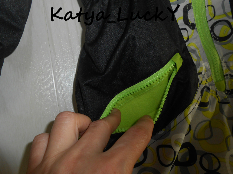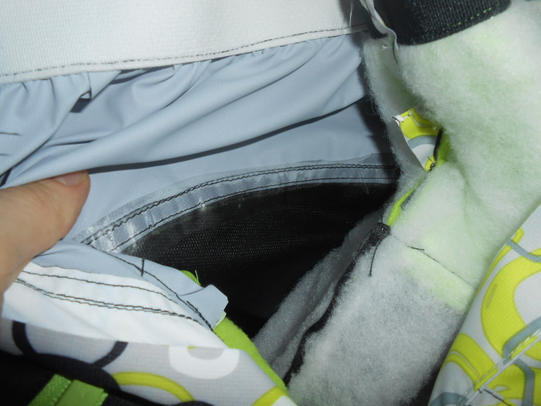 - внутри удерживающие лямки. Для того, чтобы не создавать утолщение в шве горловины, резинки вшиты в мембранный переходной элемент, и этот элемент в горловину: