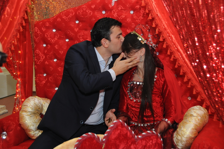 "Хна яхды", согласно древним азербайджанским обычаям, проводится накануне свадьбы в доме невесты. Можно сравнить этот праздник с девичником. В нем принимают участие подружки и близкие родственницы невесты и жениха. В последнее время это мероприятие принято проводить в ресторане. Виновница торжества садится в центре помещения. Ее лицо и голова накрыта алой фатой. Этот цвет символизирует плодородие, Солнце и огонь родного очага. Эта фата является своеобразным символом благословения и напутствия с пожеланиями счастья будущей молодой жене. Девушки, пришедшие на праздник, проводят ряд ритуалов, символизирующих прощание невесты с отчим домом.Обряд проходит так: одна из близких родственниц невесты, танцуя, берет в руки чашу с заранее подготовленной хной. После ставит две чаши перед представительницей семьи жениха - одну с хной, другую пустую. Та в свою очередь кладет в пустую чашу деньги. И берет немного хны в руки. Она в танце приближается к молодой и окрашивает ей руки, ноги и волосы. Затем она же обносит всех девушек обеими чашами. Девушки берут хну и кладут взамен деньги. Сама церемонии очень красивая и таинственная. В этот вечер мимо невесты проносят свечи, это носит сакральную нагрузку - очищение огнем. Горящая рядом с невестой свеча призвана защитить ее от дурного взгляда, порчи и нечистой силы. Еще один важный атрибут «ночи хны»- зеркало. Девушка должна поглядеться в него, а зеркало так же выполняет роль защиты от любого зла. Говорят, что в этот момент в зеркале отражается не сама молодая, а ее душа, которая и защитить невесту от различных потусторонних угроз. Праздник сопровождается народными танцами и пением. В этот вечер и молодой тоже может прийти в дом суженной ненадолго. Будущие муж и жена соединяют окрашенные хной ладони вместе и все присутствующие стремятся прикоснуться к ним или получить частичку хны на счастье.