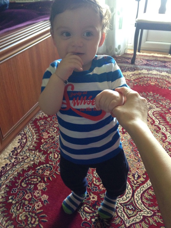 У Алишки все еще 7 зубиков, очень капризный стал, с характером) И вот 3 дня как он ходит без опоры уже (на память 27 апреля) и нет покоя мне) ну я только рада) когда что-то просишь ему сделать, он делает. Значит уже понимает) правда...иногда он просто орет чтобы я его понимала)))