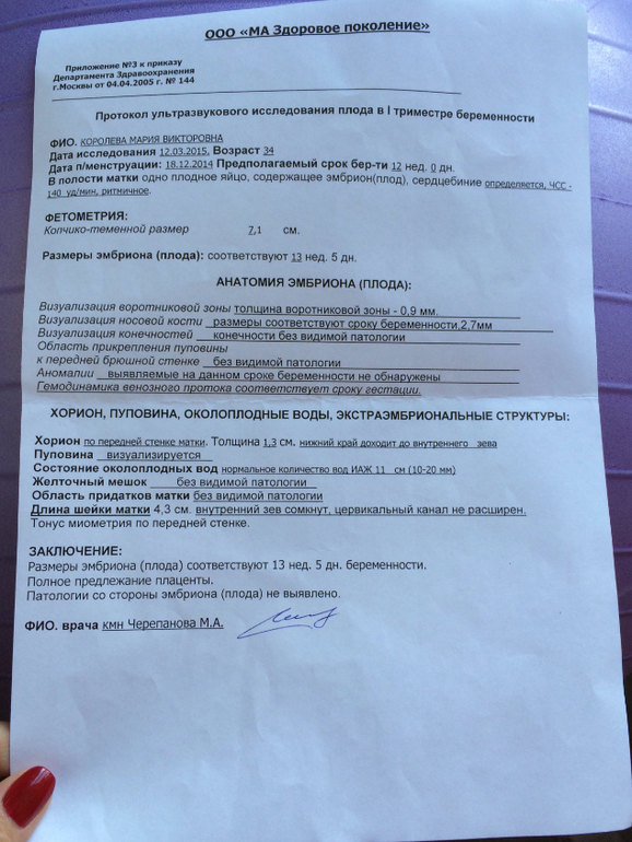 Узи планово надо было ждать - 2 недели, короче забила и сдала платно в "здоровом поколении" (стоить почти 6.000 - нехило так ), но зато быстро). Опоздала я...Срок уже 12, 1 акушерских, по узи - почти 14....Большой деть, надеюсь, что пацан) Жалко пол не увидели) Результаты крови отдали сразу, там все гут, кроме рисков по возрасту...но насколько он информативен на 14 неделях....Да из неприятного: тонус был приличный и деть был зажат (( но это могло быть следствием осмотра на кресле...А еще написали, что полное предлежание плаценты...Но как правило у всех поднимается потом, так узист сказал...Иначе ПКС
