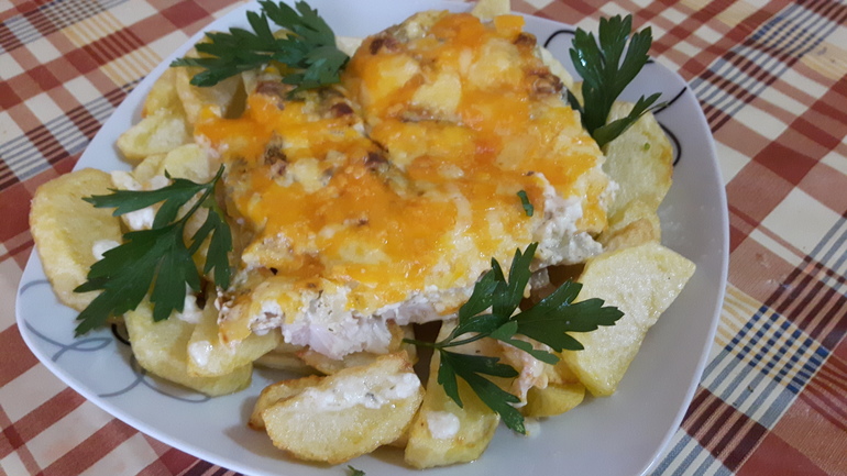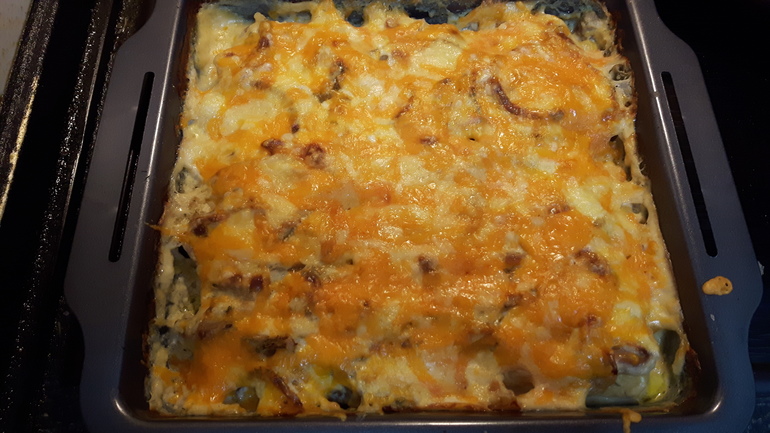 Куриная запеканка с шампиньонами под сливками)