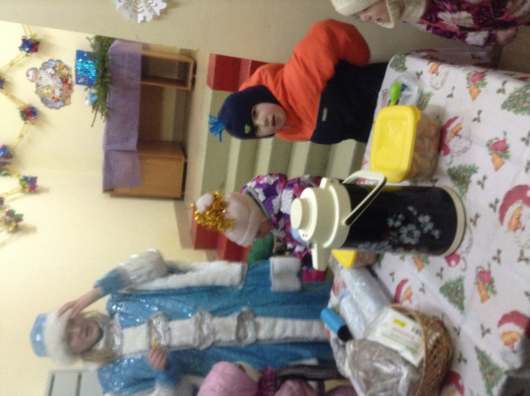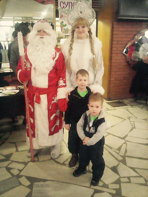 Во дворе я замёрзла, Марка увела домой- он как то не стал веселиться и отнёсся с большой опаской. Макс опять был доволен, навернул бутербродов и пряников, и неожиданно для меня выдал деду морозу стих!