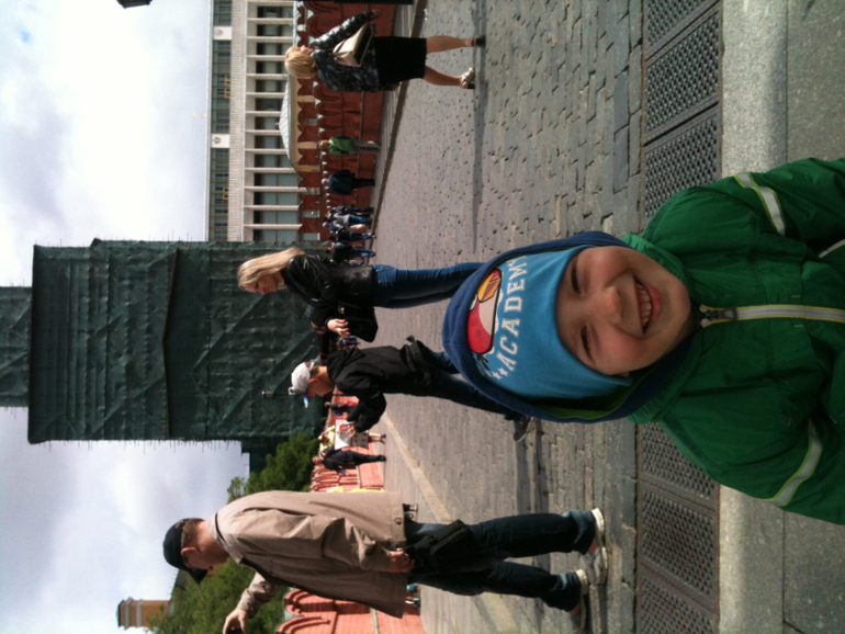 Пошли как оплёванные на площадь, побегали у фонтана. Пока бегали стал собираться бессмертный ролк. У нас ничего с собой не было, но мы встали в колонну и прошли в строю. Играл оркестр, люди несли портреты родных, детям очень понравилось- пели военные песни, рассказали поо своих солдат войны.
