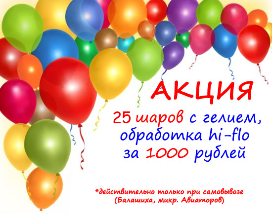 При САМОВЫВОЗЕ действует АКЦИЯ 25 шаров за 1000! (Большие шары 30-35 см) Самовывоз - микр. Авиаторы.
