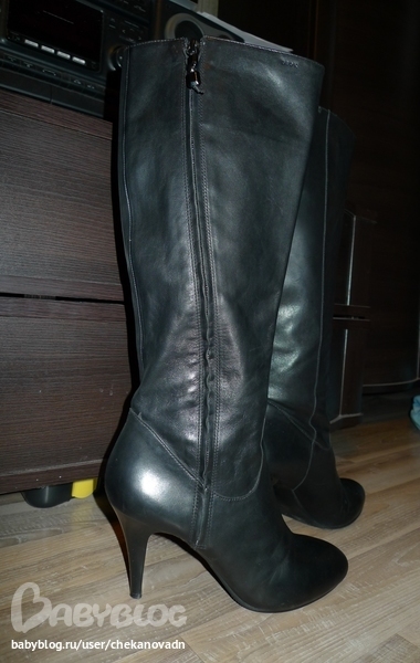 Демисезонные кожаные сапоги фирмы GEOX, 38 размера в отличном состоянии, носила очень мало. Набойки не стерты, не менялись ни разу. Высота каблука 9см. Обувь этой фирмы в рекламе не нуждается.Сапоги не промокают, особая "дышащая" подошва дарит ногам дополнительный комфорт.