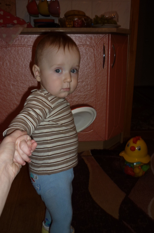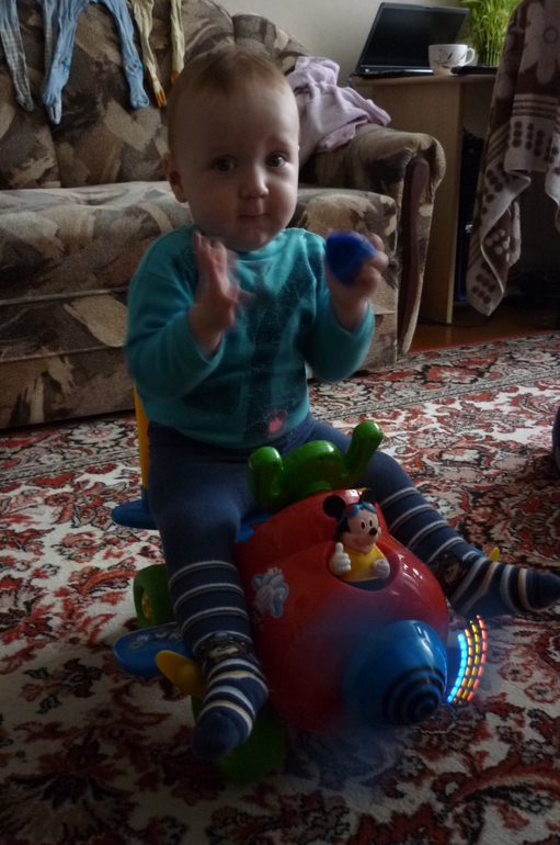 Из новых слов научился говорить: "Дай-дяй"если что-то просит, а вот баба наоборот практически перестал говорить, только иногда может сказать, а так всё мамкает. Прошёл период папы, раньше не давал ему прохода, только папа домой зайдёт, а Дамирка уже ползёт к нему, а если не брал папа, устраивал скандалы, сейчас всё изменилось, такого уже нет, а иногда даже и гулять почему-то с папой отказывается, с дедом тоже. Самое главное чтобы была рядом мама, а если дома баба, так и мама нафиг не нужна, может долго играть и не вспоминать про маму.