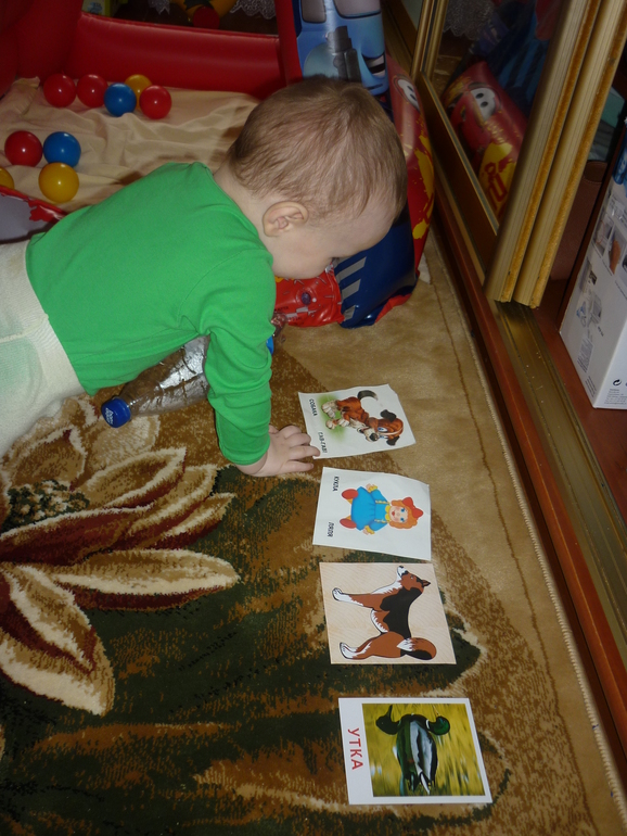 С самого утра мы С Дамириком рассмотрели книги, поискали везде собачек, почитали отрывки про них. На собачку Дамирка говорит "А-а" с такой интонацией, что понятно что это собачка. Если смотреть кого любит больше Дамирушка собак или кошек, то пока однозначно котов. Ещё будучи совсем маленьким и рассматривая картинки, Дамирушка всё время очень радовался котикам(есть одна карточка с котиком зацелованная, облизанная, обгрызенная, но самая любимая до сих пор), и когда на улице видит их очень радуется, болтать что-то начинает, а вот к собакам такой любви сильной не питает. Неделю назад ездили к моим родителям, а у них маленький собачка, так вот когда его увидел сынок, особо большой радости я у него не увидела, рядом стоящим сковородкам обрадовался и то больше и побежал с ними гулять, и как не говорили иди погуляй с собачкой, он даже и не подошёл, вот как то так))))