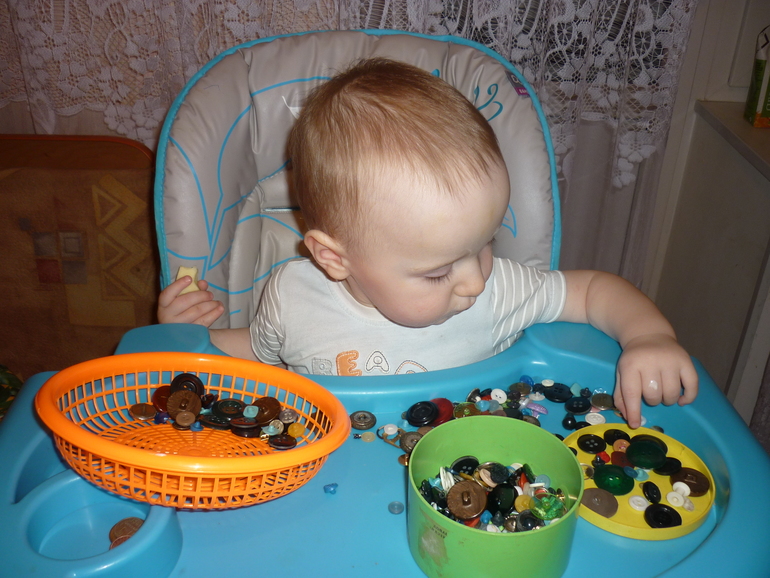 Сортировать крупу и пуговицы мы не стали, зная своего ребёнка я решила не делать этого, а просто Дамирушка пересыпал пуговицы под моим бдительным присмотром из коробки в мисочку