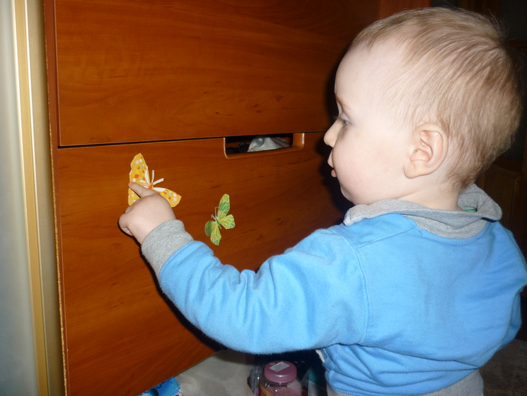 Затем Дамир собрал бабочек и отнёс их в уголок, я спросила, "Бабочки улетели?", на что он посмеялся, значится улетели.