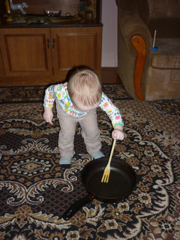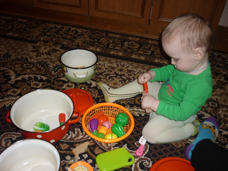 Из кухонных предметов Дамирка теперь знает: холодильник, чайник, плита, микроволновка, черпак, ложка, чашка, толкачик, кастрюля, сковорода.