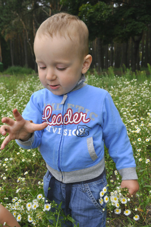 С детьми ещё особо не контактирует,наблюдает только за ними, больше любит играть со взрослыми, но если старшие дети начинают с ним играть, тогда будет и с ними играть. Уже несколько раз было, что маленькие общительные детки обнимают его, прижимают к себе, а Дамирушка серьёзный отходит от них, со стороны очень смешно наблюдать. В песочнице у детей игрушки не отбирает, не обсыпается, ведёт себя хорошо. Если хочет взять чужую игрушку спрашивает моего одобрения и только тогда берёт. Короче, на улице почти идеальный ребёнок) Но стоит нам прийти домой и понеслось: это хочу, это не хочу, дай это, дай то, обедаем иногда со скандалом, бегает дуреет,что-то болбочет, короче дома из пай-мальчика превращается в шилопопину)