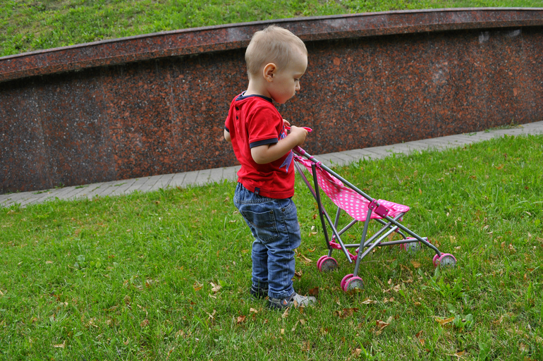 Дамирке нравится катать детские коляски, говорю мужу давай купим ему тоже, есть же для мальчиков, нет ни в какую папа не согласен, какие я только доводы не приводила, без толку, упёрся и всё, надо подумать о тележке.