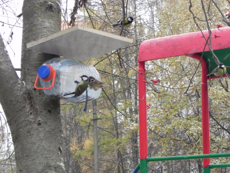 А потом мы пошли гулять и так радовались снегу)) Ловили его на варежки, оставляли снежные следы, рисовали палочкой на снегу и чистили лавочки от снега. Покормили птичек и наблюдали как они с радостным чириканьем прилетали к угощению.
