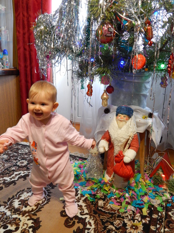 Вот еще один месяц пролетел, встретили первый дочин новый год, в начале которого один за одним стали появляться зубки, сейчас их пять. Беззубо улыбаться уже не умеет, кусается.
