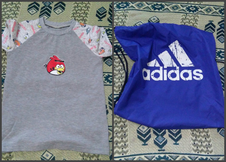Это чудесная футболочка среднему и мешок для формы старшему