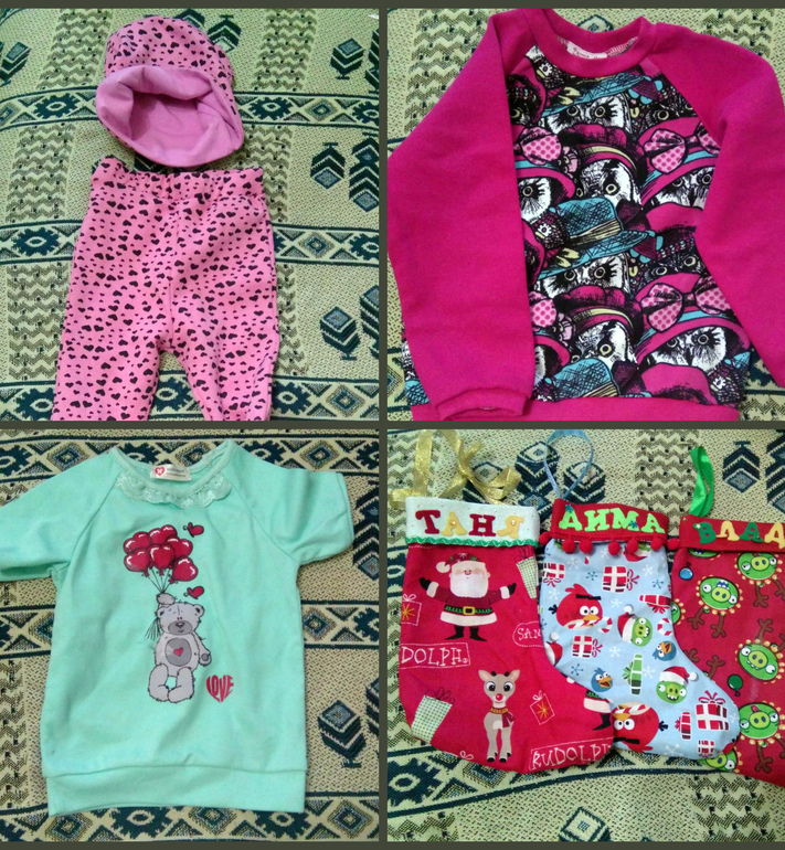 и игрушки и книжки и мне пряжа , вещи которые сшила Женечка я все-таки сфотографировала!