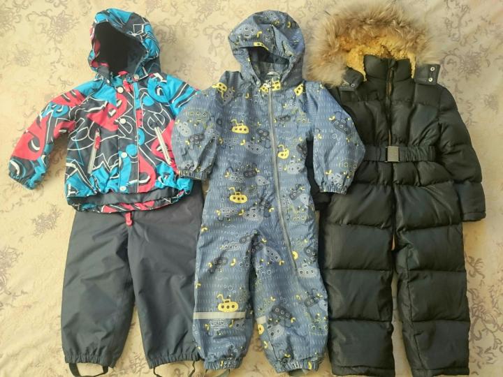 6.комбинезон Borelli, размер 2 года, но большемерит, одевали на 3 года, изософт, утеплителя грамм 240, высокая грудка, трикотажная подкладка по спине и попе. Очень теплый. Из нюансов на коленках есть небольшие черточки.цена 1500
