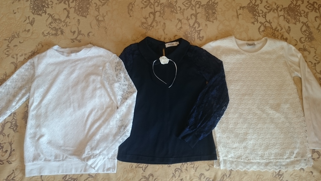 1.Кофта Zironka, хлопок,сверху кружево р. 140 , но на рост 136 максимум. цена 350 руб