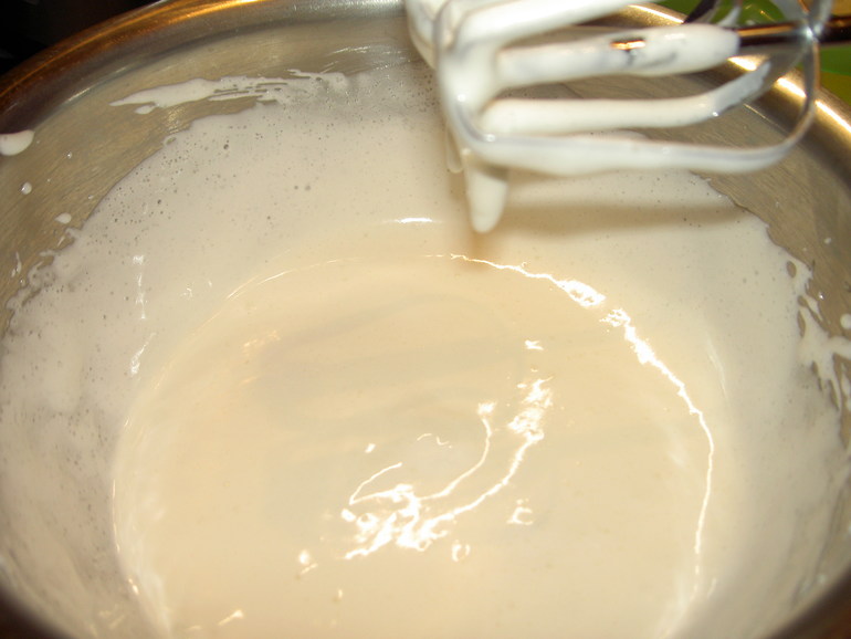 В отдельной емкости взбить миксером яйцо с сахаром до пышной белой массы (минут 5).