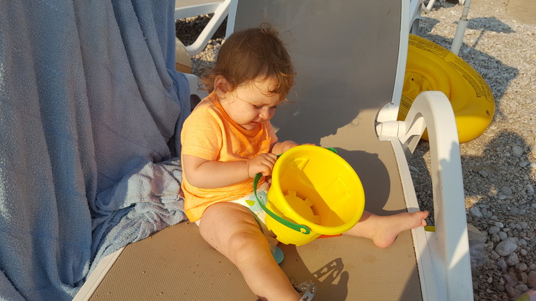 Из умелок, еще научилась делиться. Все что у нее в руках, иногда пытается вложить мне в рот, или в руку, или может что-то протянуть мне показать, мол "смотри, что у меня есть"!